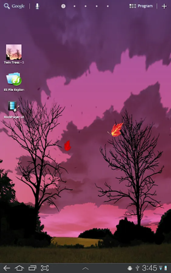 Activate this free live wallpaper from your home screen by pressing menu -> wallpapers -> live wallpapers -> Twin Trees