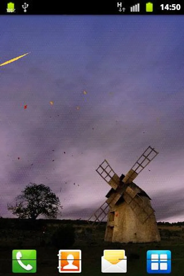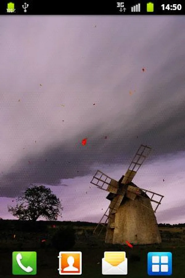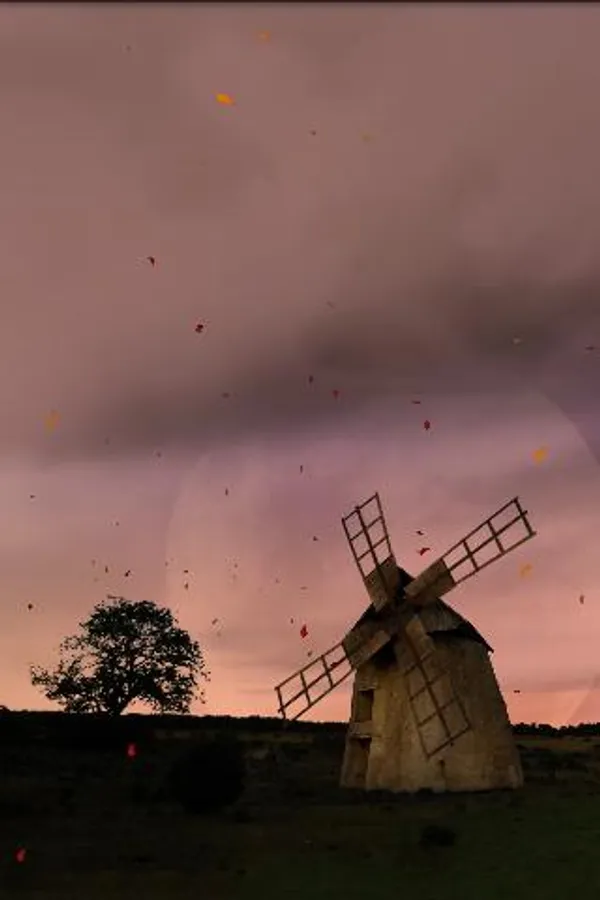 Realistic live wallpaper of an old spinning windmill. Autumn leaves swirl through the air, clouds rush over the sky and you can decide either to set a specific time to change the colors of the sky and clouds, or use the real time to make the live wallpaper shift colors during the day and night.