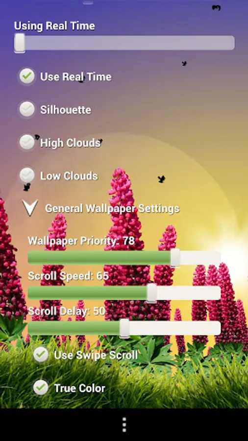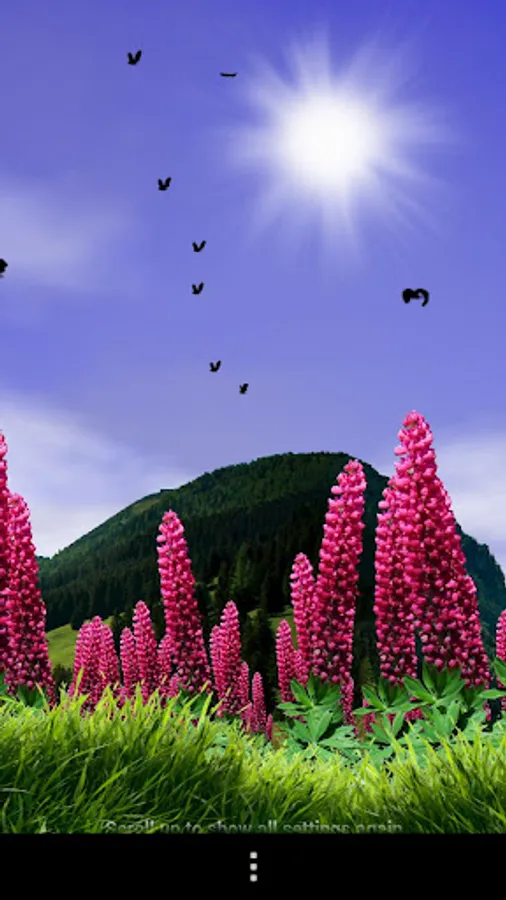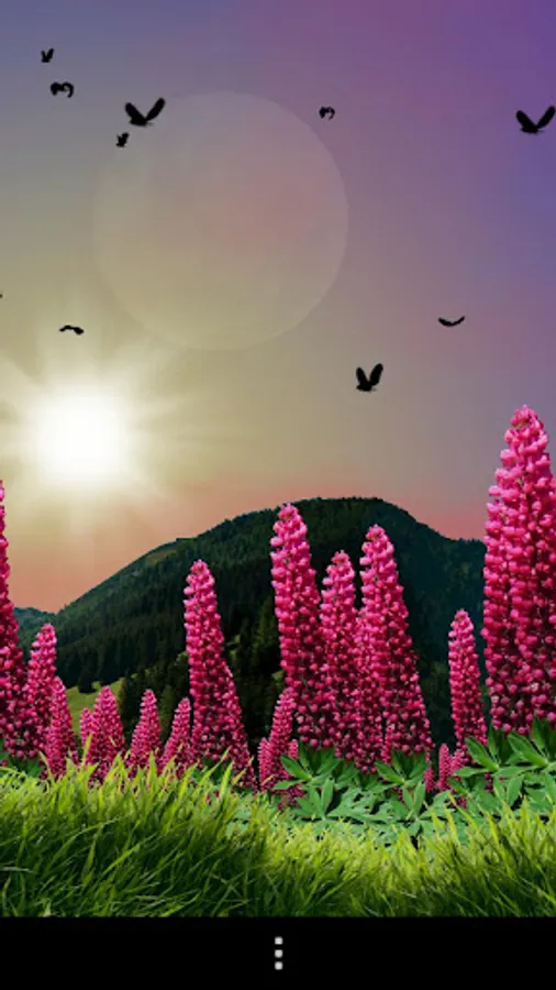 Live wallpaper with wild lupins swaying in the gentle wind on the foot of the Liechtenstein alps.