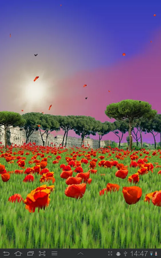 This live wallpaper showing a calm sea of beatiful red swaying poppies.