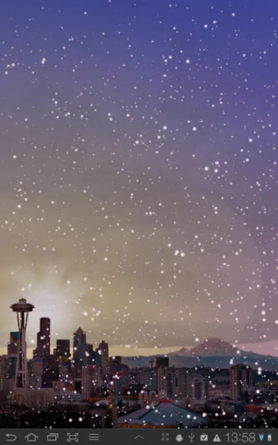 Realistic and beautiful live wallpaper of different cities with snowfall, moving clouds in different planes and colors that change dynamically during the day (full version).