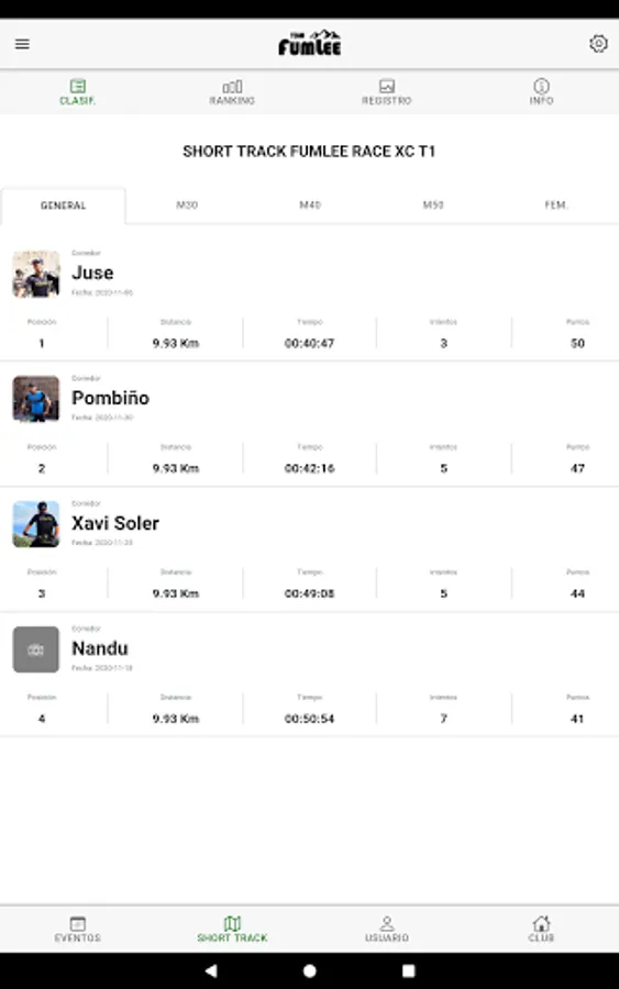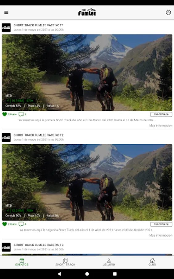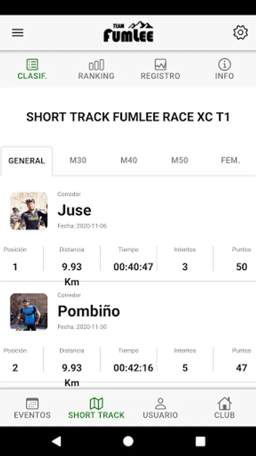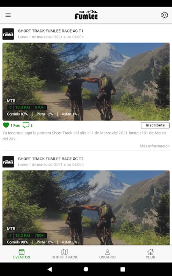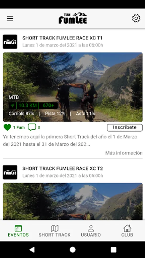Fumlee Team is a Premia de Dalt cycling club that organizes MTB events in the mountains and has created this free application for all participants. The Short Track Fumlee Race events are different tests that are carried out throughout the year with a score and registering a classification among the participants.