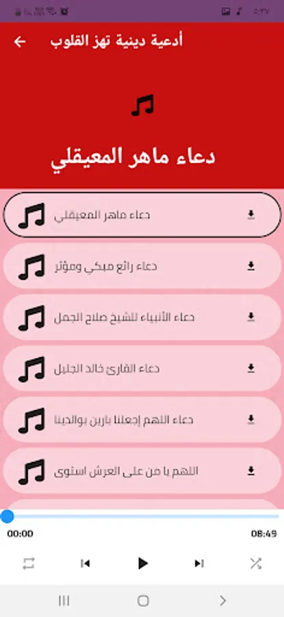 ✔ To download any supplication from a supplication without the net on the device and listen to it without the net, or you can add any supplication to the favorites list.