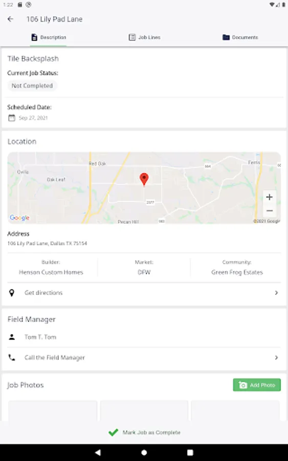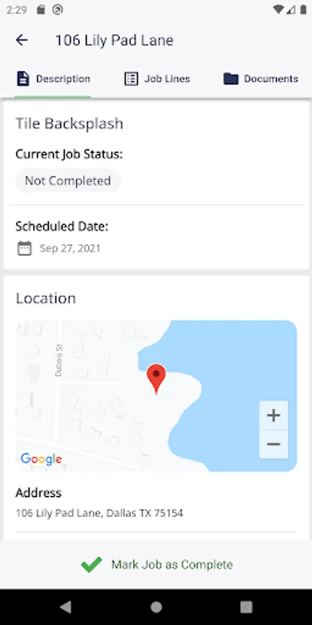 Have instant access to any related job details, documents, blueprints and notes.