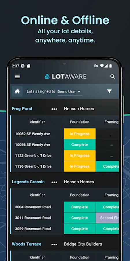 LotAware works in the background to help ensure you always have the latest information, even when you go offline. Changes made offline are saved until your connection is restored.