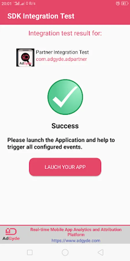 This Application is for Developers ONLY. This is used after the Application Developer has integrated AdGyde SDK in his application and wants to do a basic test to verify AdGyde SDK integration is OK.