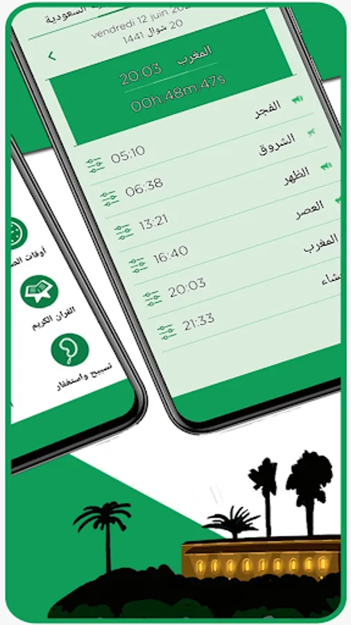 • Alert for each prayer with the possibility to choose the sound of the Adhan by prayer and salat and Prayer Times.