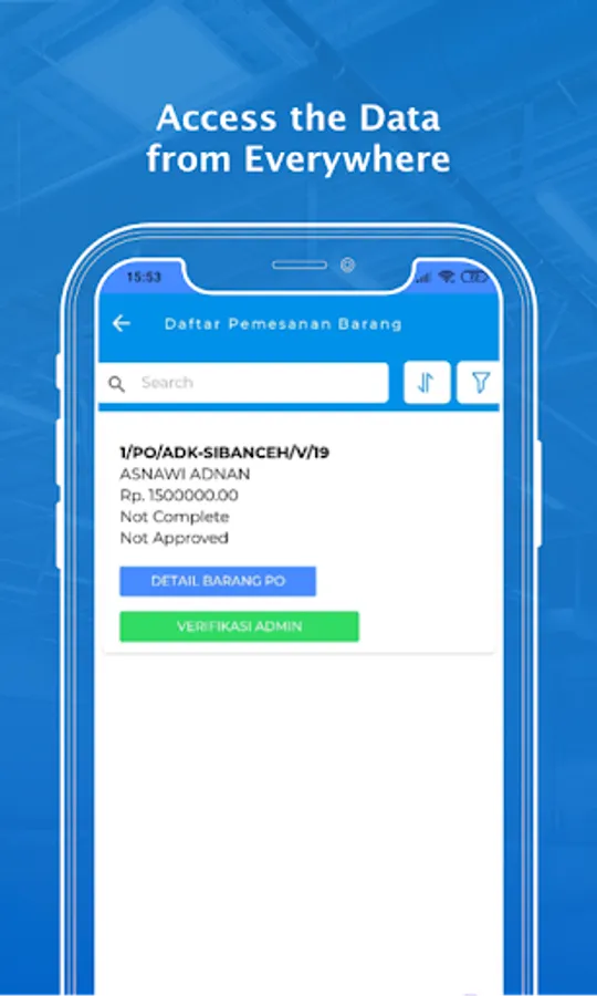This application is used to check the remaining stock in the project and manage the stock in and out. The application was made specifically for the Manahan solo stadium project, the Adhi Karya building department.