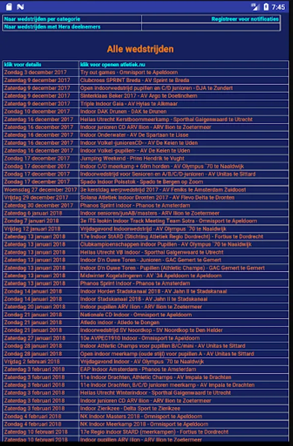 ANU all competitions. With separate all matches where AV Hera athletes registered. In addition, the ability to receive notifications when new matches are logged.