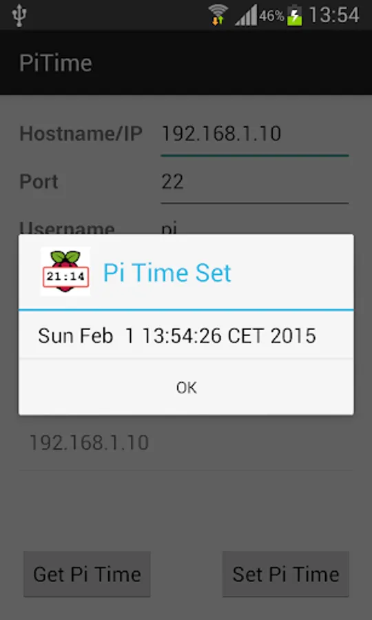 PiTime updates the time (more precisely the date) on the Raspberry Pi, taking the time from the Android phone. It simply sends the above one-liner to the Pi, no more, no less!