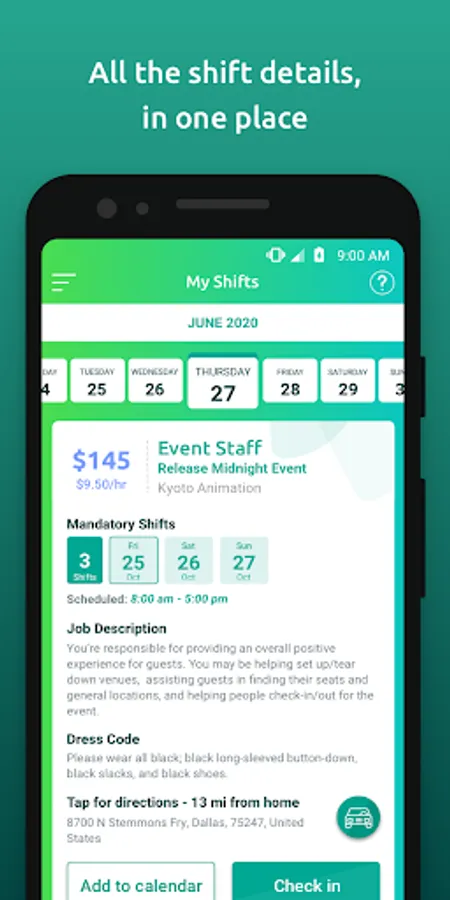 How it works: Once you download the Adia app, you’ll create a profile, telling us your interests, skills, and availability. You’ll go through one-and-done onboarding to get hired. Once your profile is activated, you can book any full-time, part-time, and pick-up gigs you see in the app.