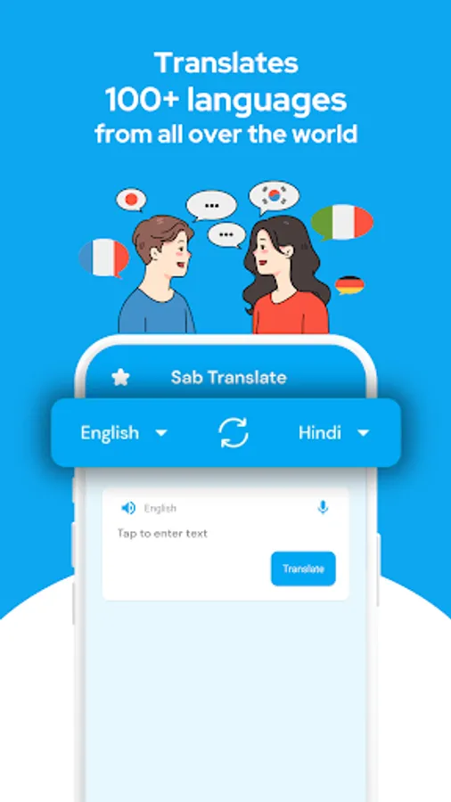 Introducing "Sab Translate" - the ultimate language translation app that combines speed, secure, and customization to enhance multilingual communication. With many powerful features, this app breaks down language barriers and connects you with the world.