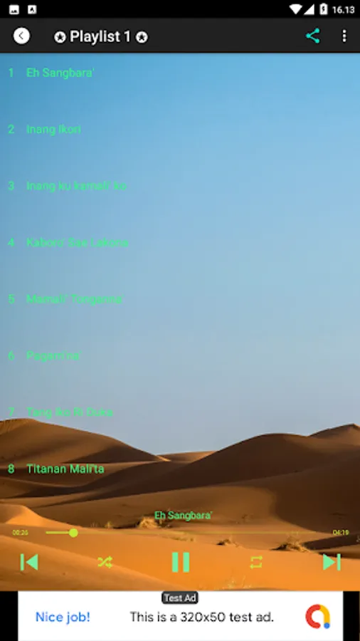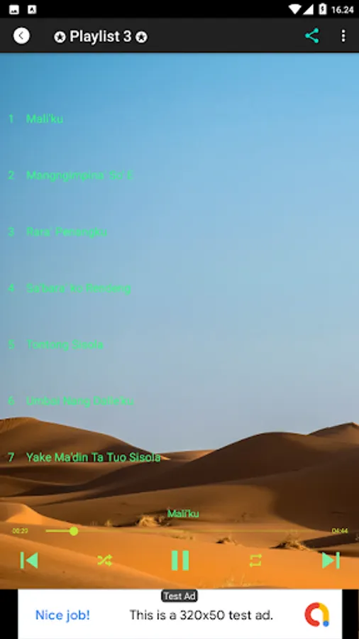 This application is an offline application, which contains 30 mp3 Toraja songs.