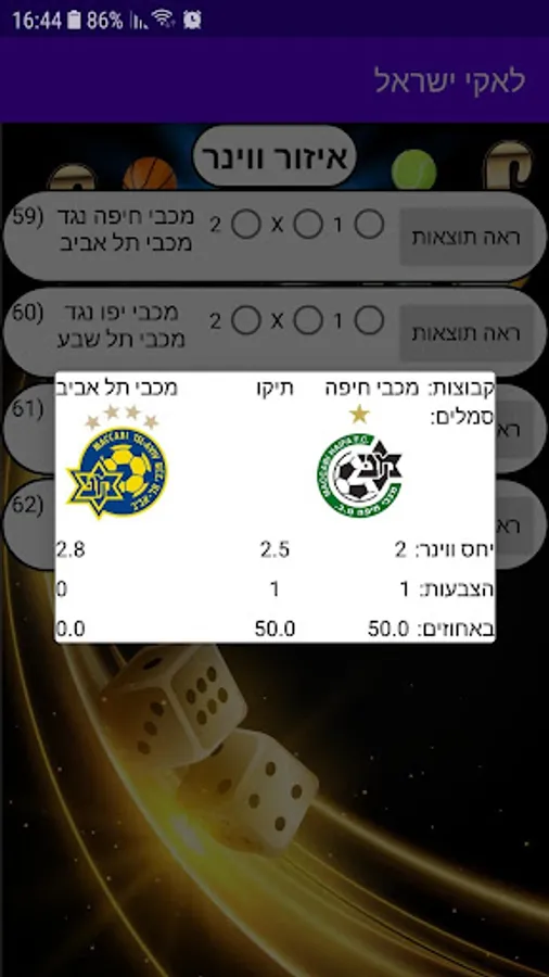 For example, in Wiener, the app tells us how many people voted Maccabi Haifa against Maccabi Tel Aviv, and that is designed to help us.