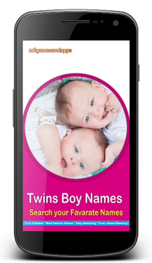 This is baby boy twins names app, This app total 1500 twins names are available. in this app, All Catagiri twins boy Names, Historical twins boy names, Mytholagical boy Names and meenings are available, every name is share your friends, A-Z names are available , Name alphabet Searching system available