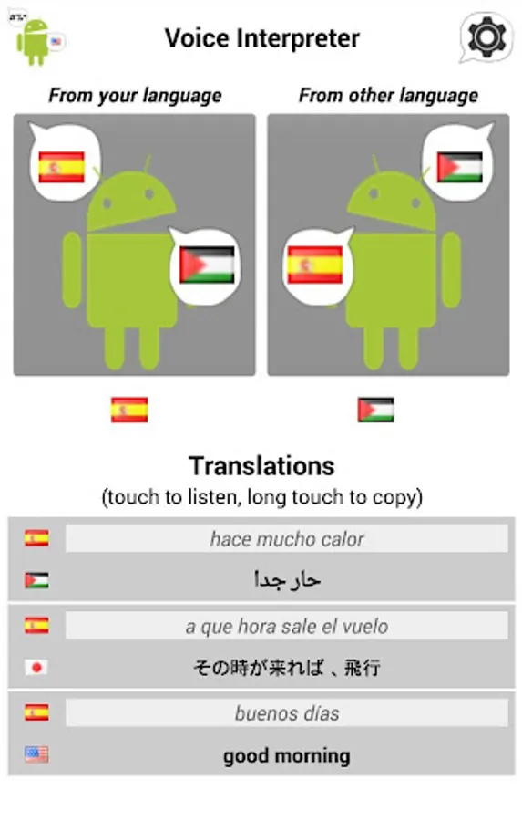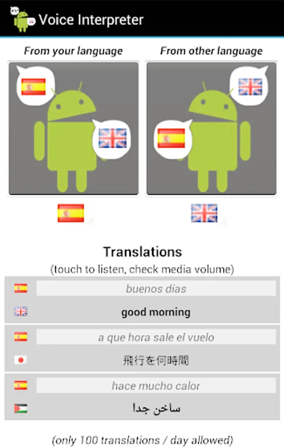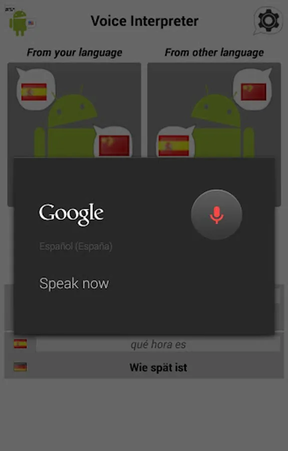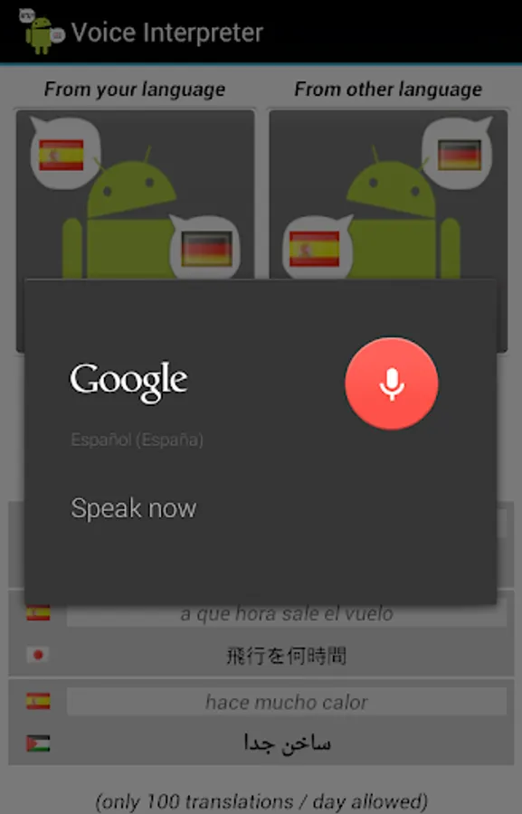 Speak to your device, this app will translate it to the chosen language, that simple. It will also speak the translated text if you have the language installed in your device.