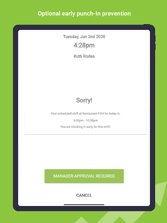 Managers can approve early punch-in if you have ‘early clock in prevention’ configured.