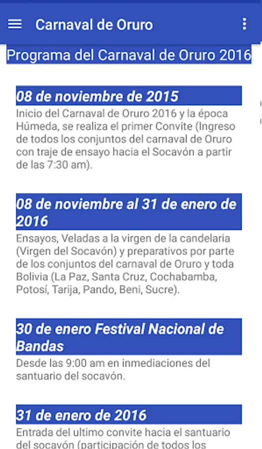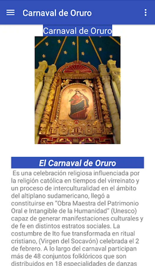 It is an application that lets you search the streets of Oruro and see your location. to enjoy more Oruro Carnival