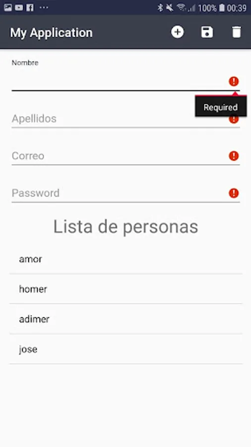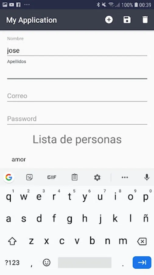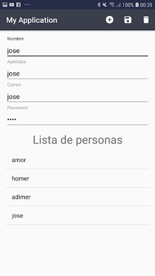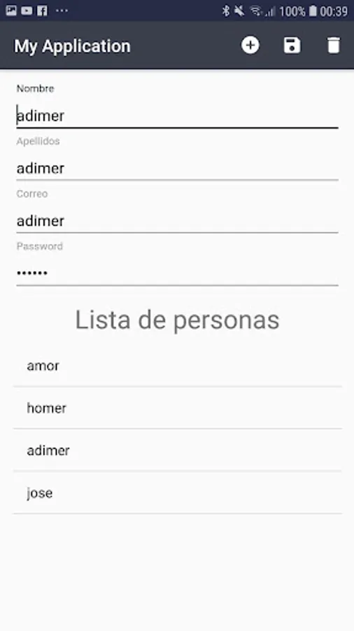 a firebase test of a basic crud for the exhibition of a project for the faculty