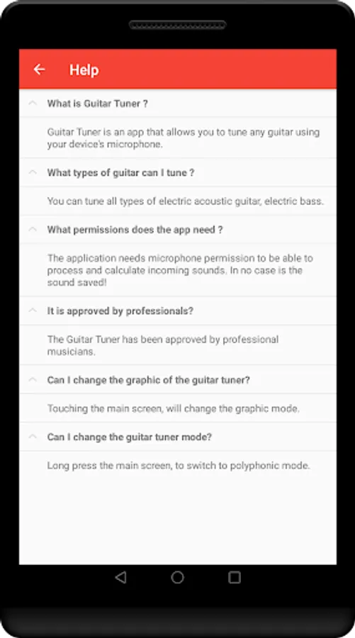 This guitar tuner helps you tune acoustic and electric guitars with a high level of precision and incredible ease. The application itself determines the deviation of the rope and shows you in which direction you have to adjust it. Checked by professionals.