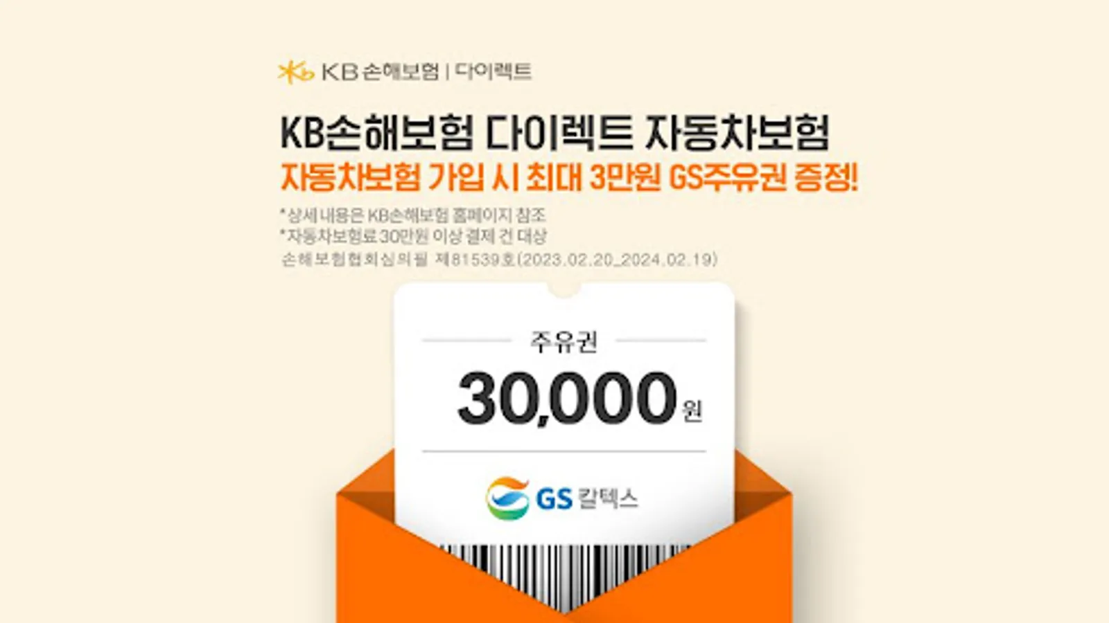 GS gas coupon up to KRW 30,000 when subscribing to KB Direct auto insurance