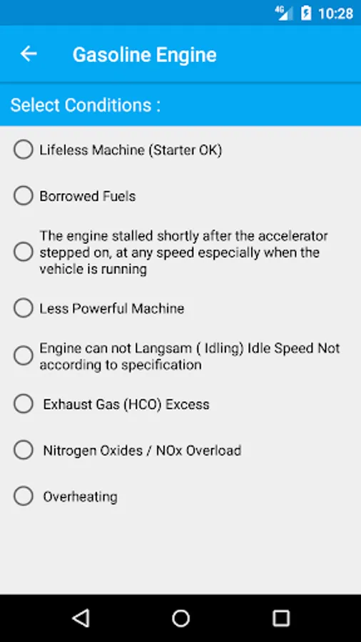 Engine Analyser Troubleshooting is an application to detect / analyze the damage that occurs in the vehicle gasoline engine and diesel engine. This application contains problems that often occur in gasoline and diesel engines. Stand-alone app that does not require links with other apps, live touch and analys.