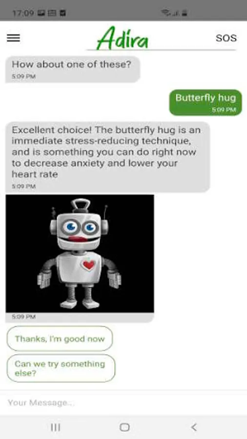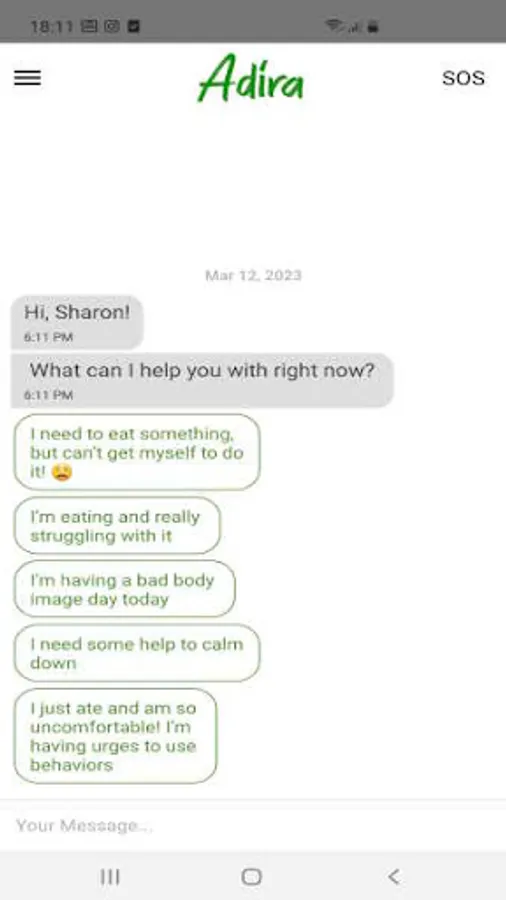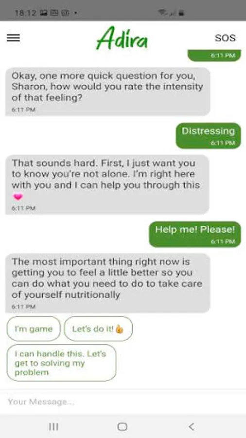 By using a friendly bot interface (an App supported by cloud-based services) and leveraging evidence-based treatment modalities for eating disorders, Adira makes high quality professional therapy accessible for all. In its initial launch, Adira is focused on the salient topics of body image, nutrition, self-esteem, self-care, healthy coping skills and regulating mood and anxiety.