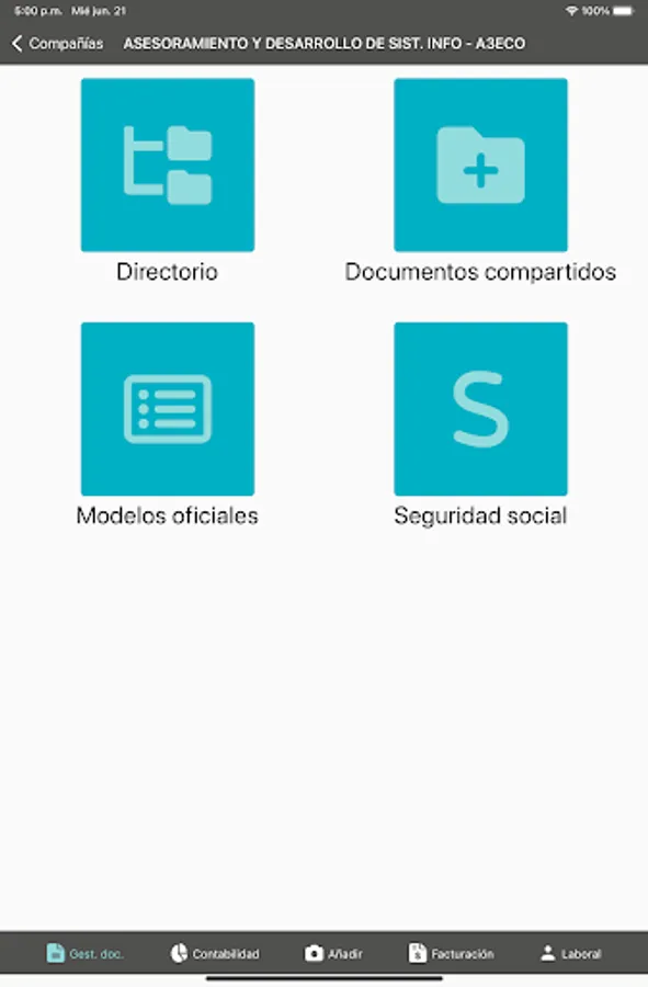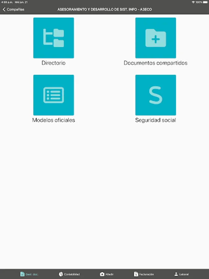 Comparta y descargue documentos y tenga acceso a sus impuestos, nóminas, seguros sociales y toda la información necesaria para la gestión de su negocio 24hx7d.