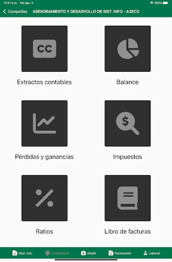 In addition, Gabinet puts at your disposal a multi-language and multi-currency ERP system, to manage your billing, purchase management, collections and payments, recurring invoices, etc. Everything from a single device and adapted to the legal changes that are required.