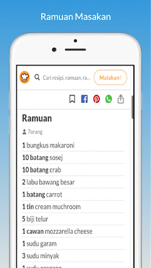 * Boleh melakukan carian resepi masakan yang diingini