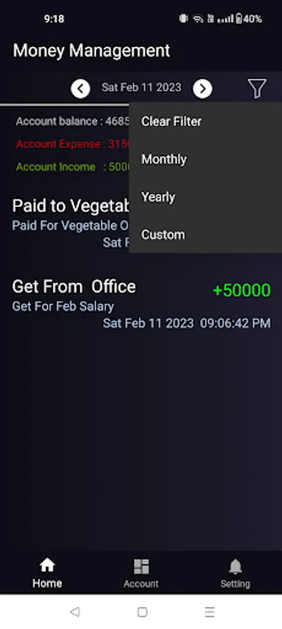 Check your Activity with Daily, Monthly, Yearly, Date Range Filter.