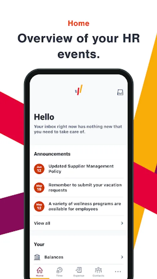 Report time. Submit expenses. Check your payslips. Look up colleagues. Job done.