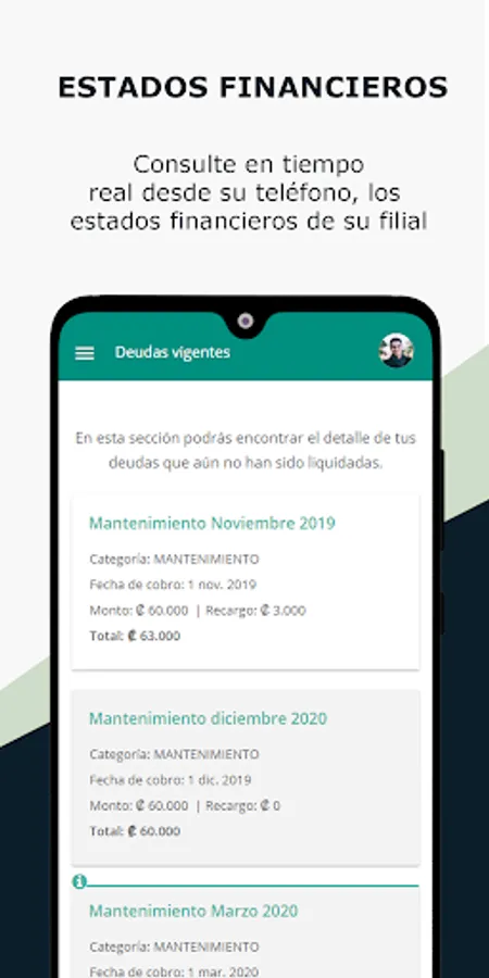 - Check in real time from your phone, the financial statements of the condominium or its subsidiary.