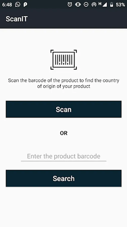 ScanIT is an barcode code scanner application which scans the barcode and tells the country of origin of the product.