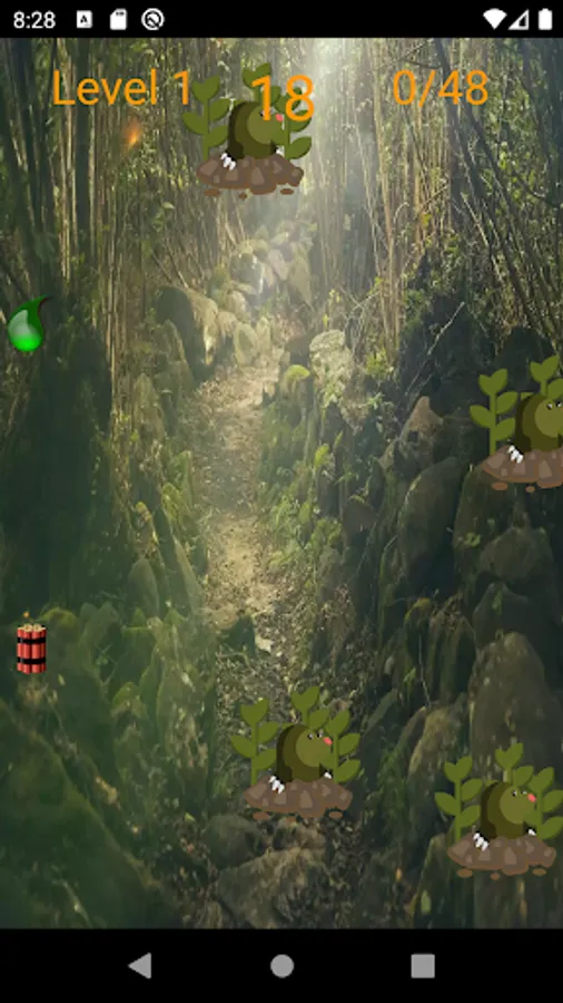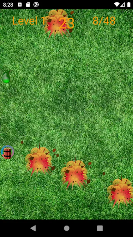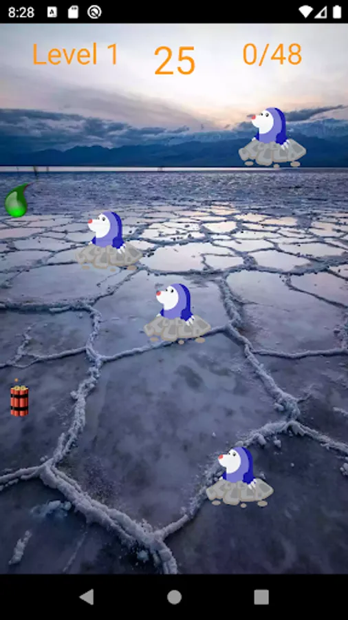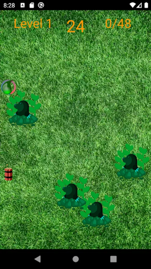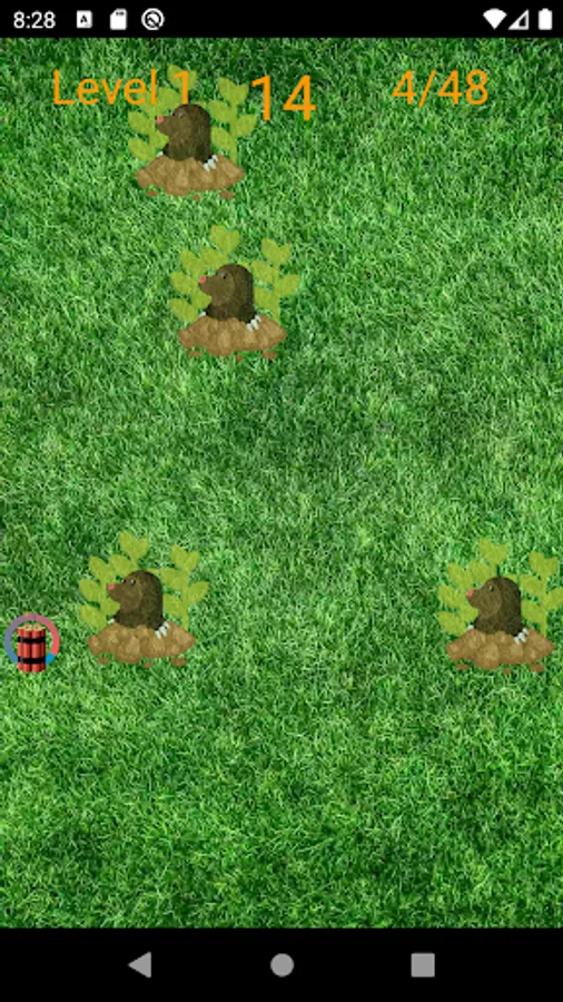On tapping the ground instead of a mole, the moles underground are alerted, and will not pop-up for a few seconds! The countdown timer and current score/target score are on the top of the screen.