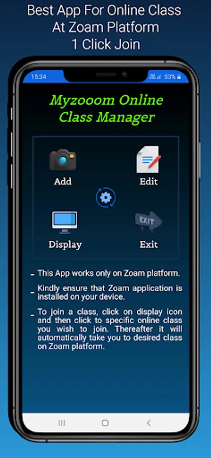 Myzooom Online Class Manager is a app by Aditya Agrawal Raipur , India for the purpose of helping school students to manage and join a online class with a single click. This app is mainly developed for school student to simplify the process of joining a myzooom online class. Students can add or edit online class records day before the day of classes and they can join the classes next day with a single click. It also shows if it is the time to join the class or if you are late. You can also delete the older or unnecessary online class from the list. So this app is much helpful for the school students to manage their classes in a organized way.