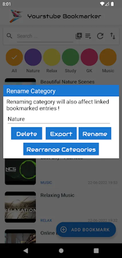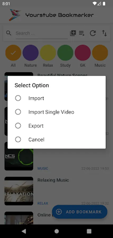 In this app, you can easily bookmark the video you want and access it later. This app works on a category-based system which allows you to organize your bookmarks. You may also rename the category whenever needed. You can easily edit and delete the bookmarks as desired. Yourstube Bookmarker shows a thumbnail of videos you bookmarked, thereby helping you to easily recognize your bookmarks. You can also set bookmark loading animations which will make your overall app loading experience more smoother. This app also provides an easy and straight-forward method to import and export your bookmarks to prevent any data loss. You may also search for your bookmarks if you have stored large amount of bookmarks.