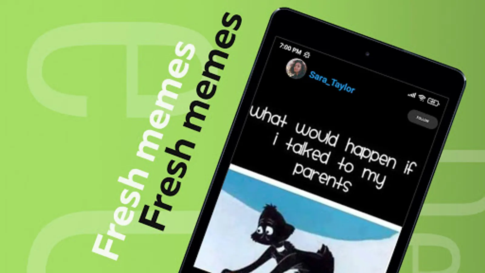 You can browse millions of memes from people you follow and find something for any situation in your life.. You can post to Memes today your own funny pics and make smile new friends from your followers.