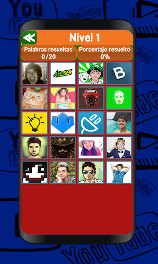 ▶ To be successful in the game you must find the correct name of the youtuber channel that represents each image. You must respond correctly in order to unlock new levels.