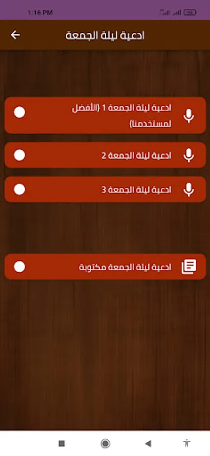 يمكنك التنقل بين أزرار تطبيق ادعية ليلة الجمعة بسهولة