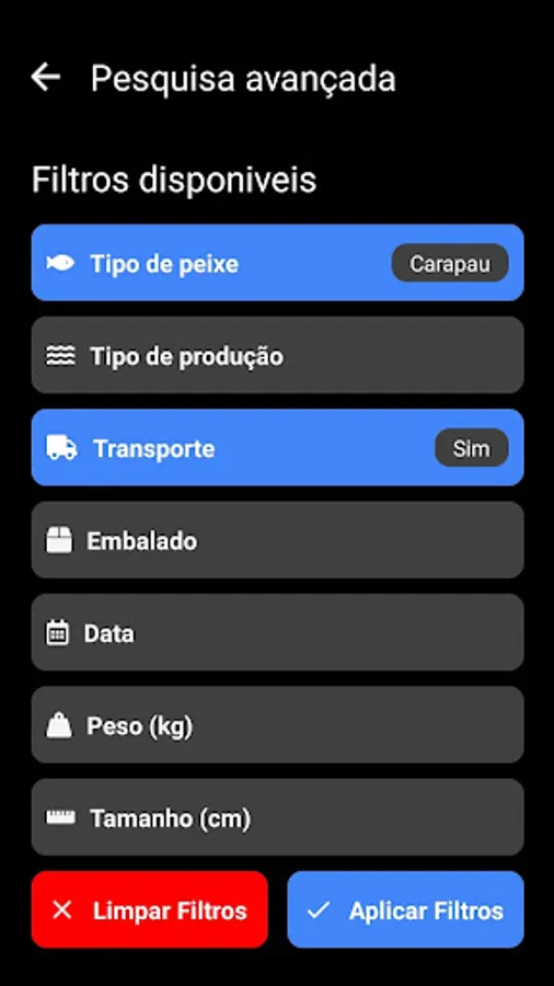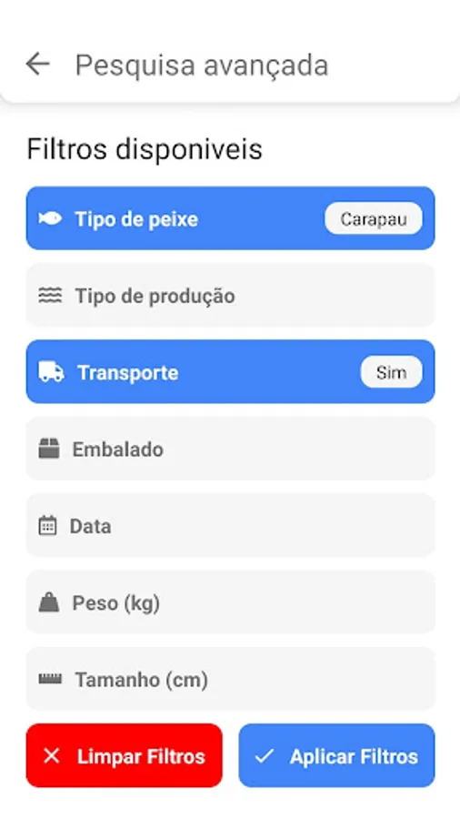 Through a quick search interface, it is possible to see where the suppliers are with the type of fish desired, according to dates, species and sizes.