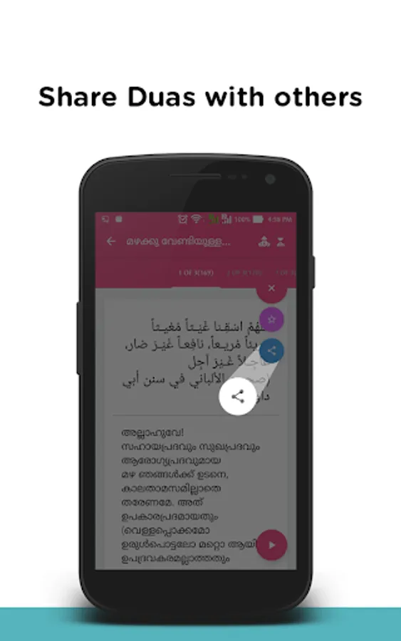 viii) Share option lets one to distribute the duas and this beautiful app with loved ones.