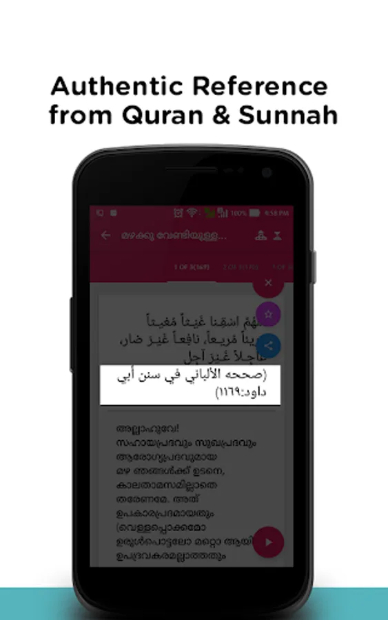 Android application based on the world renowned supplications book, Hisnul Muslim (Remembrance and Supplication from the Quran and Sunnah) by Sheikh Sa'eed bin Ali bin Wahf al-Qahtani and its Malayalam Translation by Abu Abdillah, Jeddah