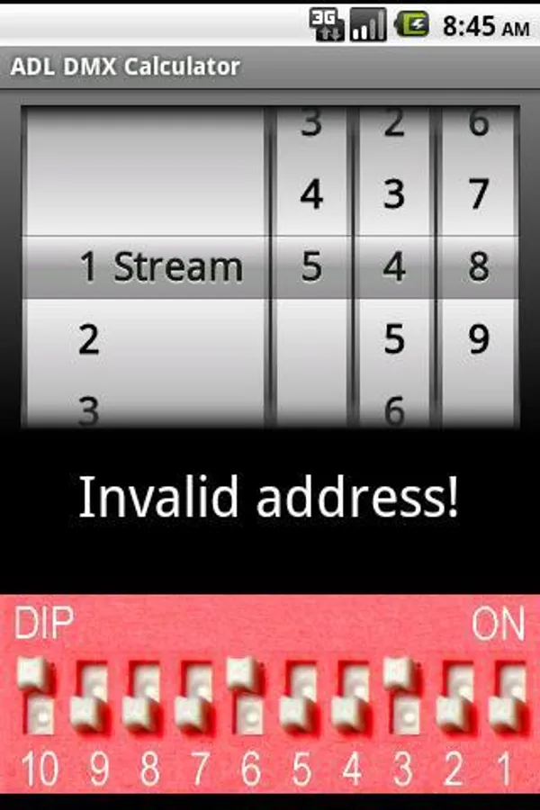 Easy DIP-switch calculator that helps with setup or checking of DMX addresses.