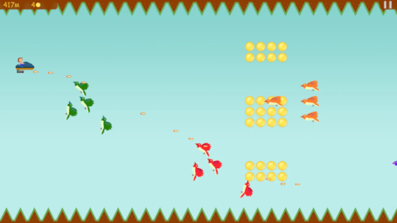 Fly your spaceship in the sky, dodge birds and collect varied treasures along the way like coins and powerful bonuses!