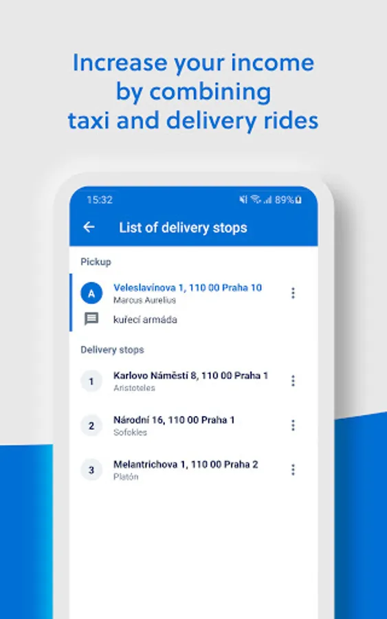 The Liftago Driver app helps honest and licensed taxi drivers recieve more orders from passengers in their vicinity - as standard orders or as "orders-to-ride" which help utilize their capacity by receiving orders from nearby current target destination.