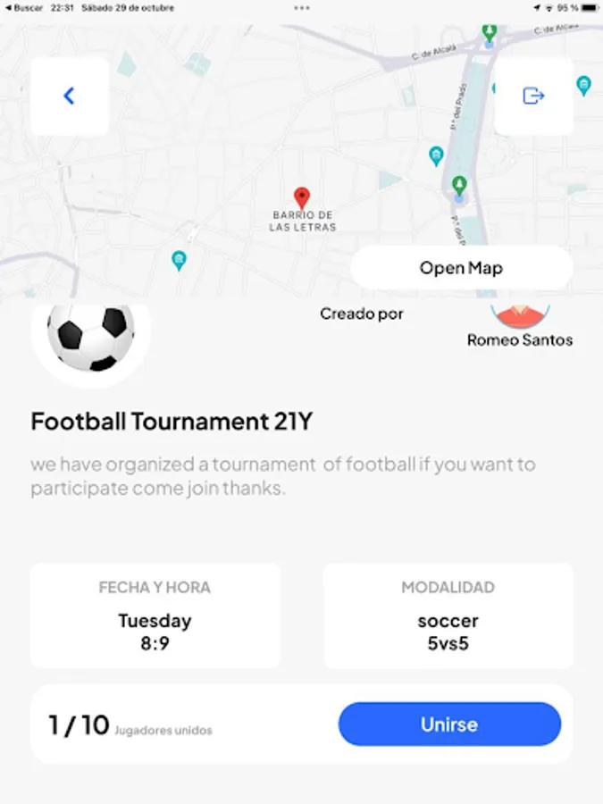 For the event to be confirmed, a sufficient number of participants is needed. Once this number is reached, the match will be confirmed and all that remains is to wait for the date and time to play.