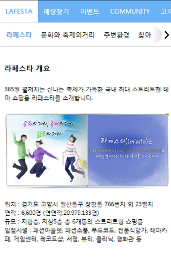 La Festa is a thorough analysis of the consumer's life style and celebrity fashion at home and abroad on the basis of more than 150 food and beverage facilities around the world, beauty clinic and tastes of N three games, characters, etc. through a rigorous screening process consists of selected industries be. La Festa Lotte Cinema theater in the country, with 08 representing the Republic of Korea by opening the neighbor is the best shopping mall multiplex.
