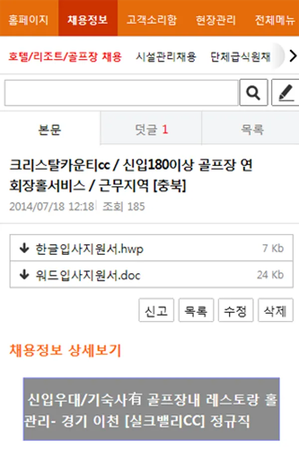- Jobs (호텔/리조트/골프장채용,시설관리채용,단체급식원채용,기타채용,전국시외버스운행)