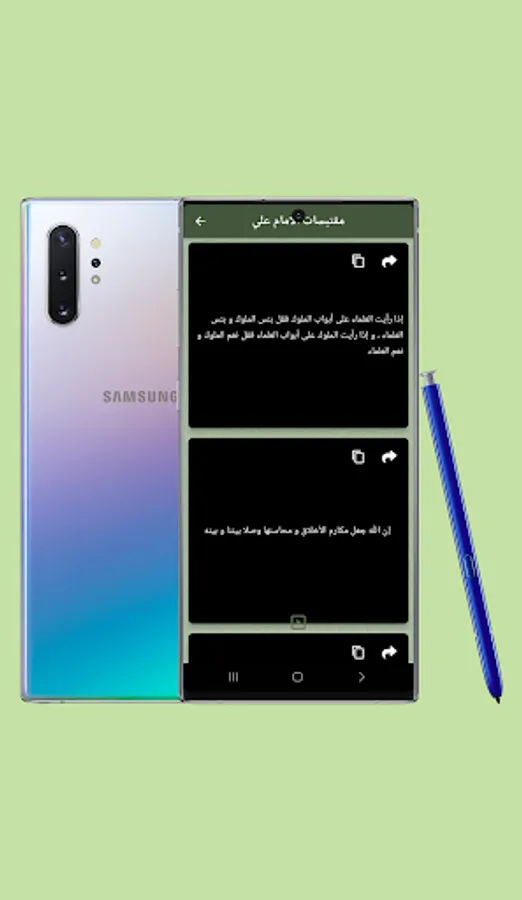 ـ تطبيق "مقتطفات من كلام أمير المؤمنين" يعتبر تطبيقاً احترافياً ومميزاً يحتوي على مجموعة كبيرة من أقوال وحكم أمير المؤمنين علي بن أبي طالب.